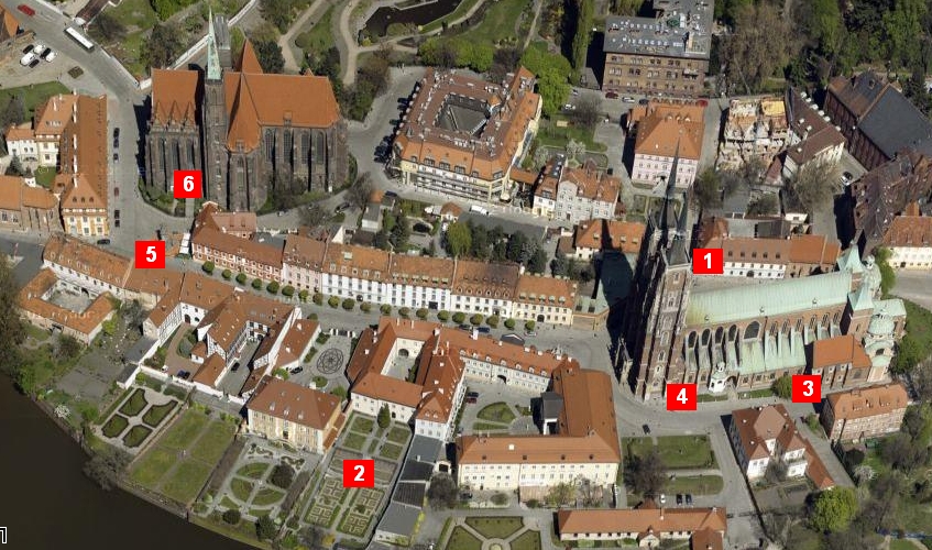 So that’s it for Ostrów Tumski. For those of you who are curious, here is a map of the island with the various locations I talked about marked in red.